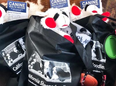 Once the puppies are 8 weeks old, you have a week to pick up your puppy. Your puppy will go home with his/her health record, a toy and blanket with the scent of momma and littermates, a leash and collar, puppy food, and a California Sheepadoodle bag.