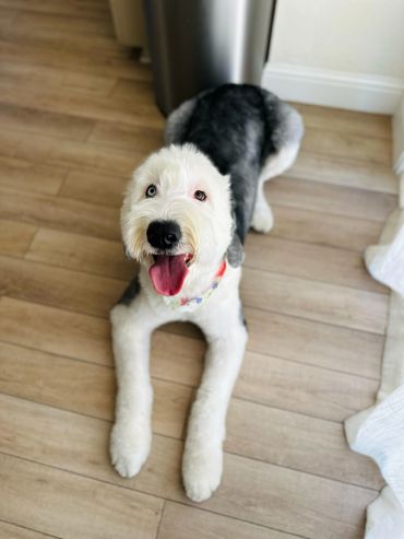 We only have one stud here and that is our wonderful Humphrey as he isn't appreciative of the competition. Our other OES studs live with their amazing guardian families. Ernie is a standard poodle whom we use occasionally, and he belongs to a breeder friend.