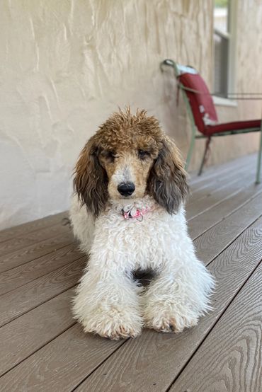I originally purchased Mochi to be my widowed mother's companion, but she was not ready for a furry addition to her life. Mochi lives with her guardian family and her Sheepadoodle and Standard Poodle siblings. Mochi is a little velcro girl who never leaves your side or your lap. She is the biggest cuddle bug!